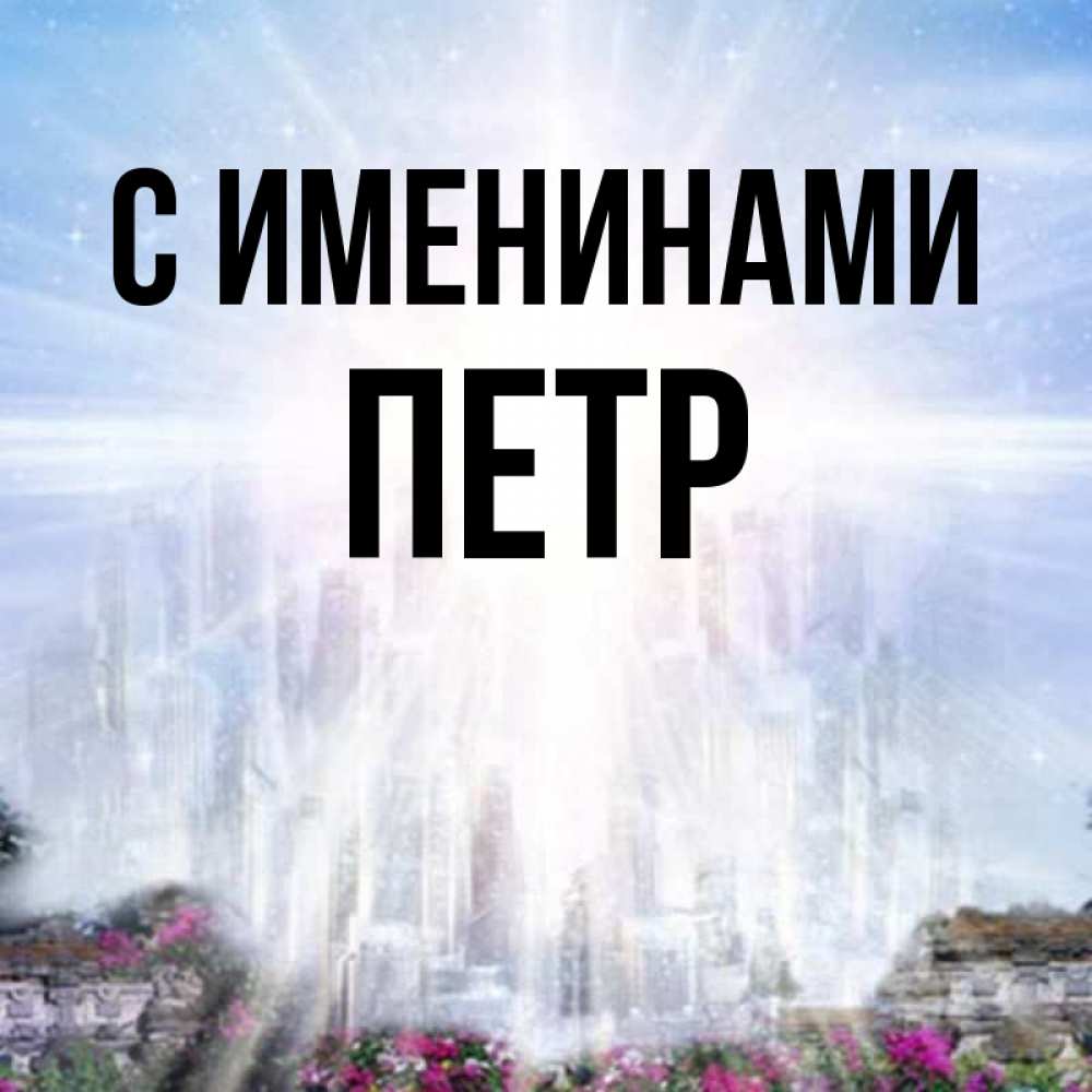 Открытка С именинами Петр. Ангельский город. небесный свет