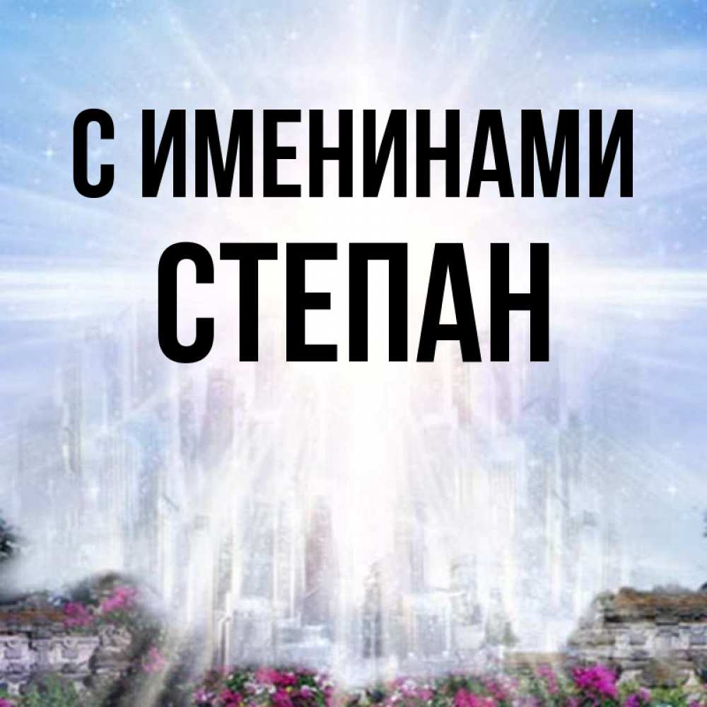 Открытка С именинами Степан. Ангельский город. небесный свет
