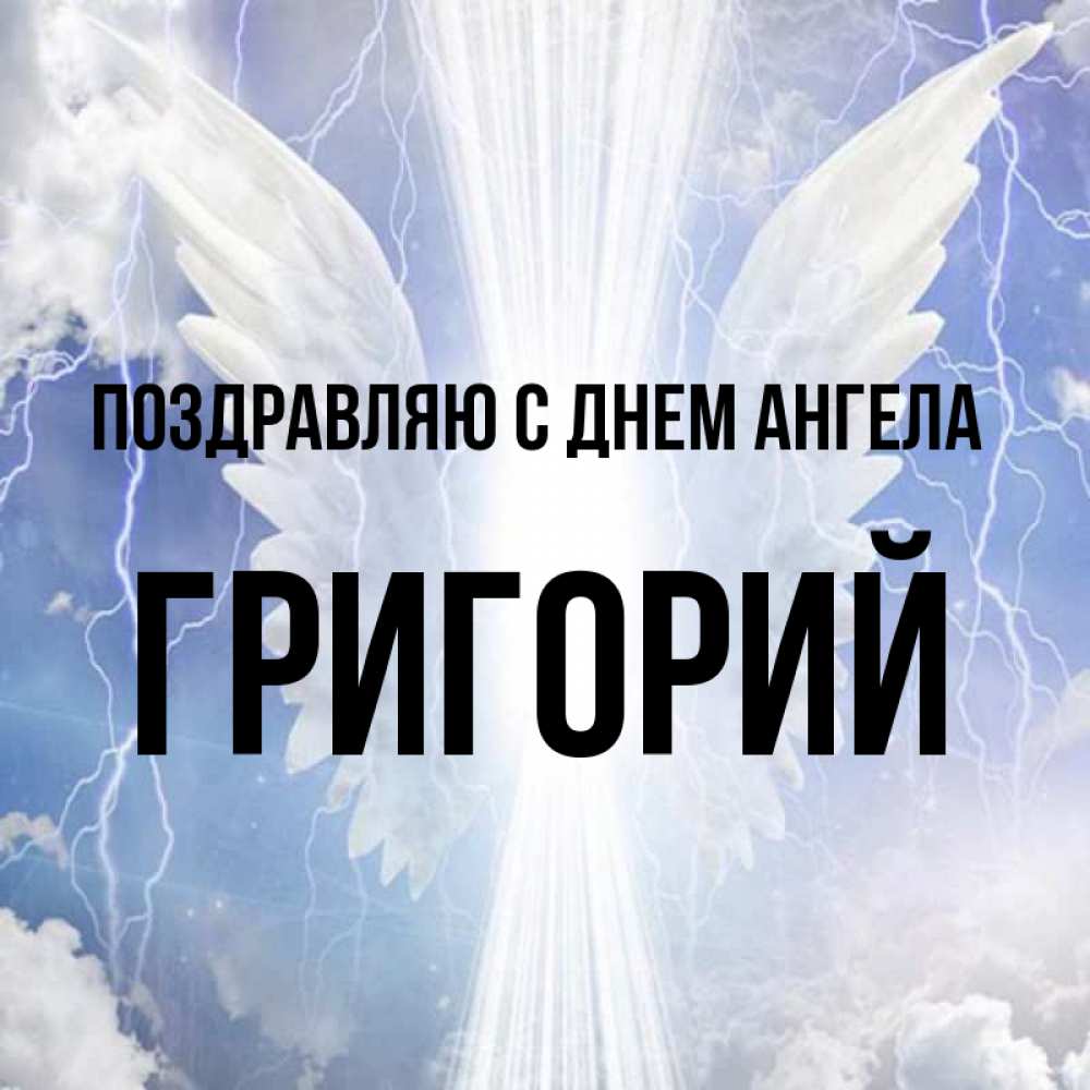 Открытка Поздравляю с днем Ангела Григорий. Ангельские крылья. молнии на небе и свет