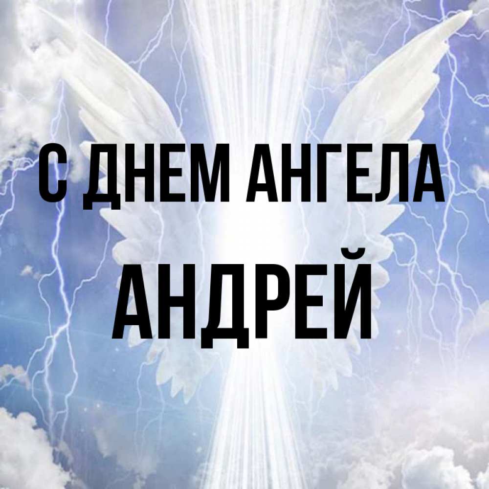 Открытка С днем Ангела Андрей. Ангельские крылья. молнии на небе и свет