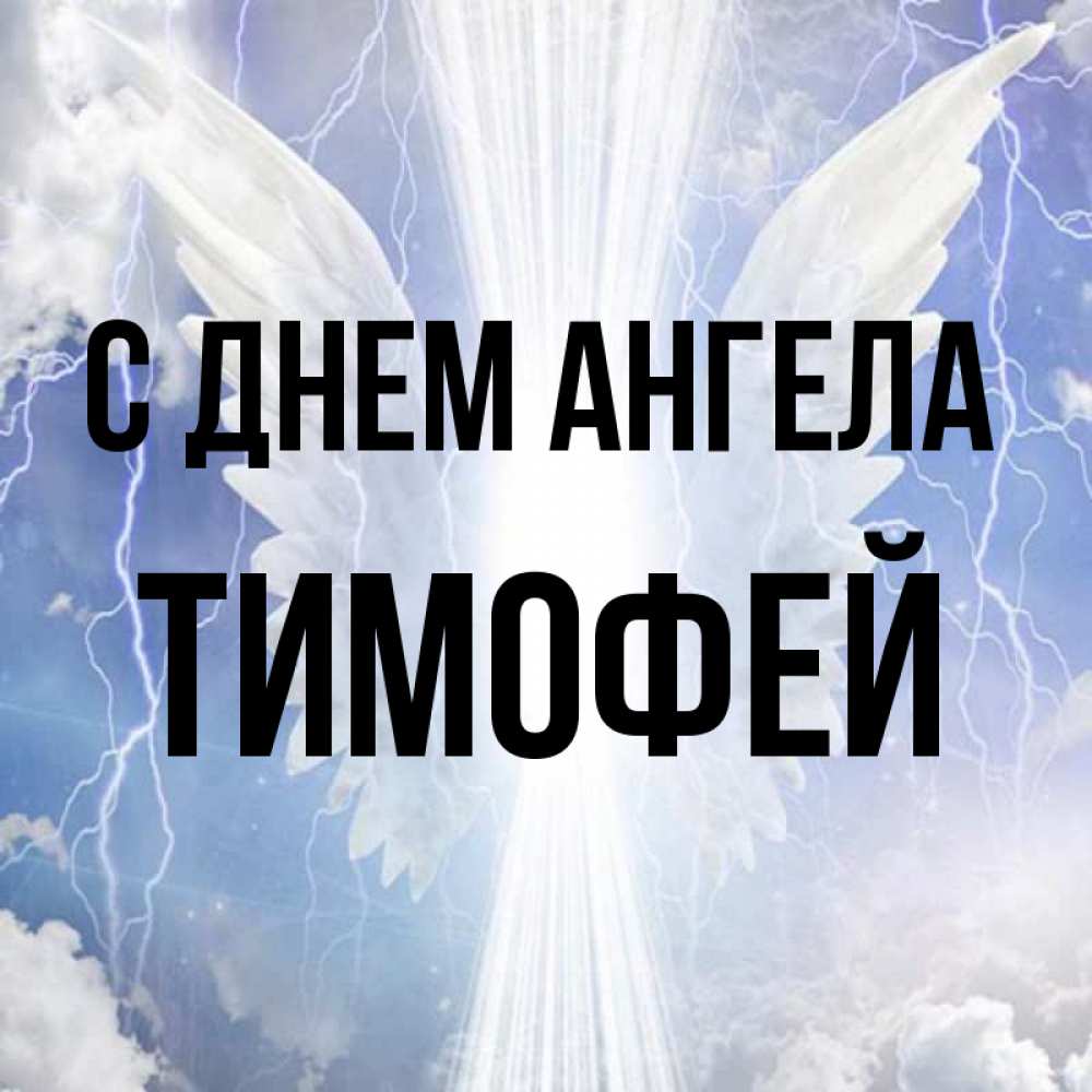 Открытка С днем Ангела Тимофей. Ангельские крылья. молнии на небе и свет