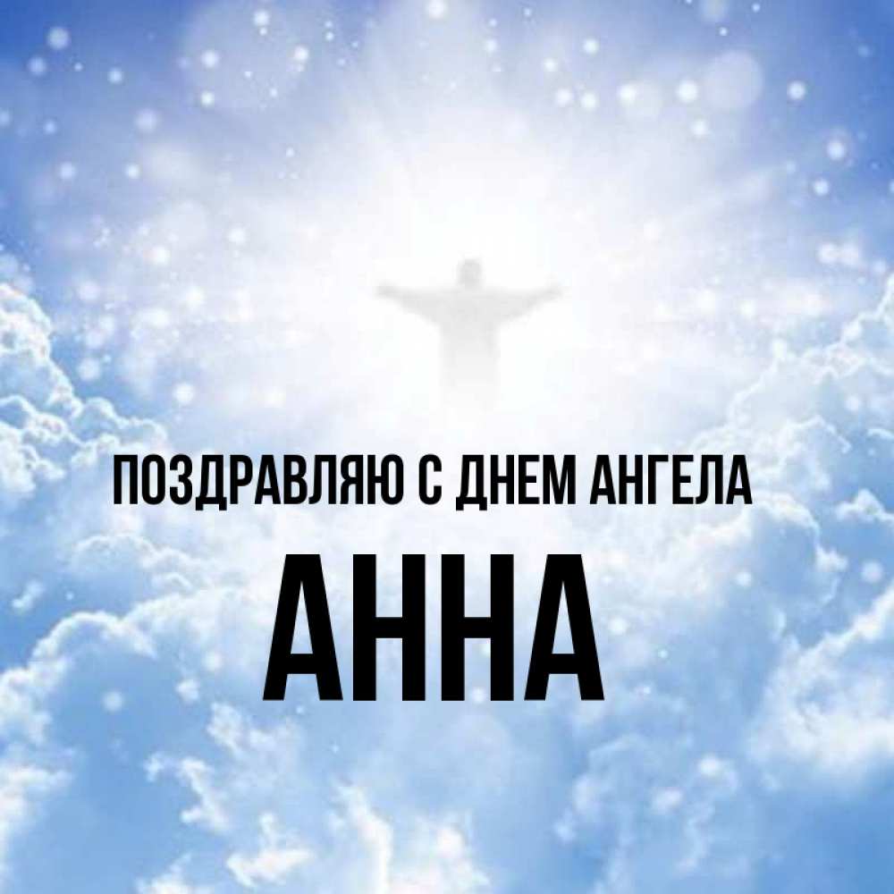 Открытка Поздравляю с днем Ангела Анна. ангел на небе. ангел на облаках в свете солнца