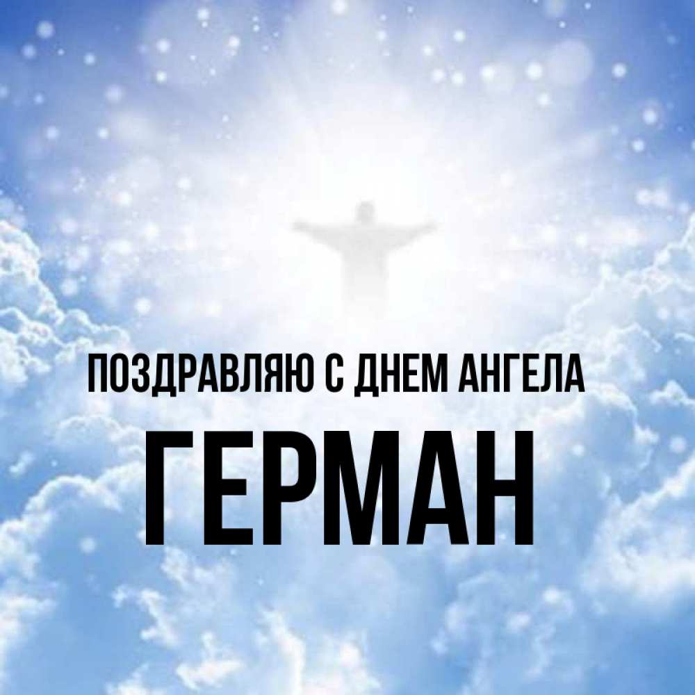 Открытка Поздравляю с днем Ангела Герман. ангел на небе. ангел на облаках в свете солнца