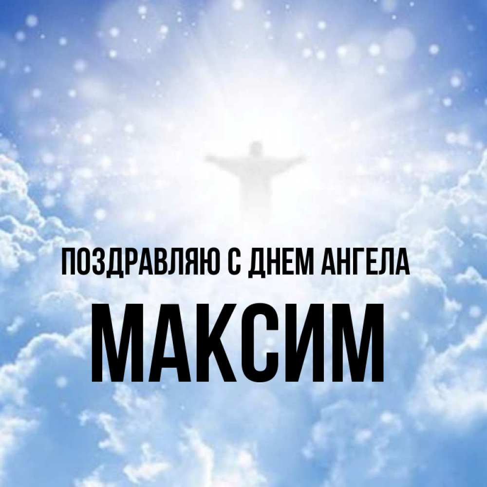 Открытка Поздравляю с днем Ангела Максим. ангел на небе. ангел на облаках в свете солнца