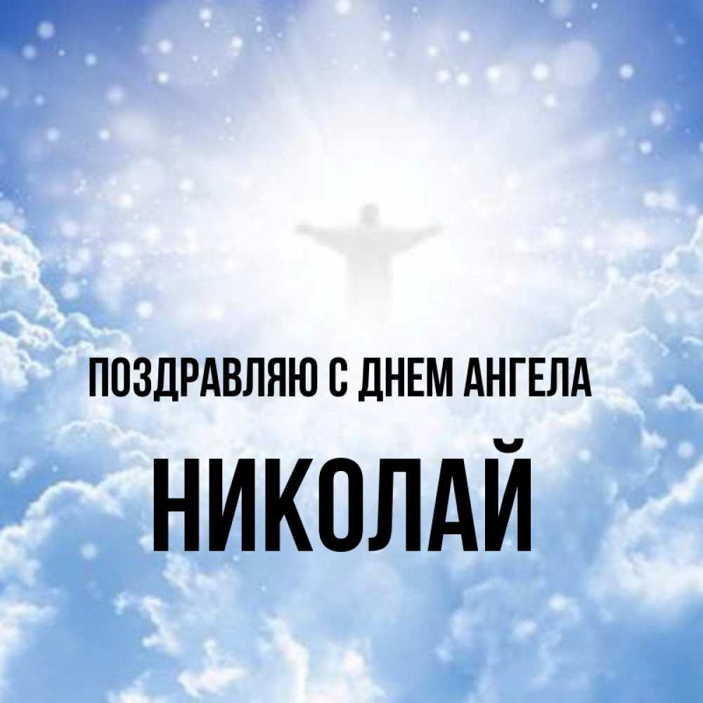 Открытка Поздравляю с днем Ангела Николай. ангел на небе. ангел на облаках в свете солнца