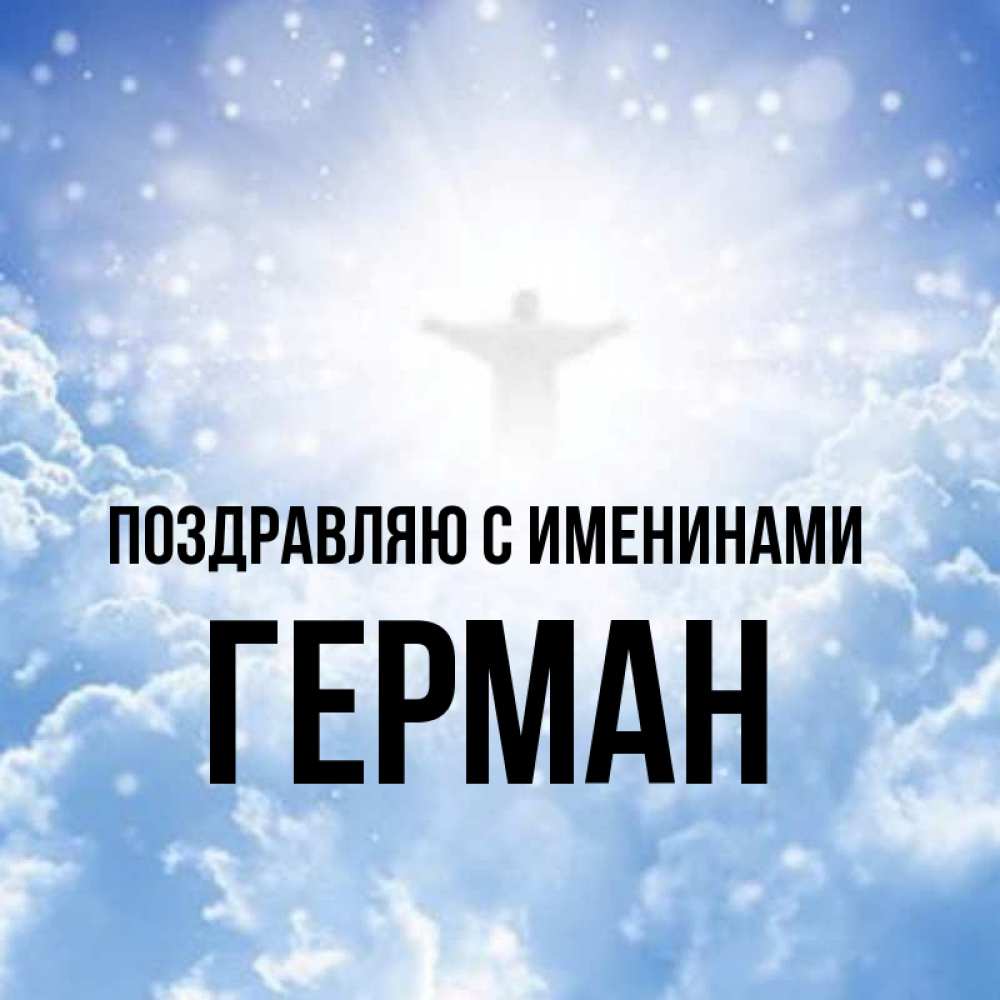 Открытка Поздравляю с именинами Герман. ангел на небе. ангел на облаках в свете солнца