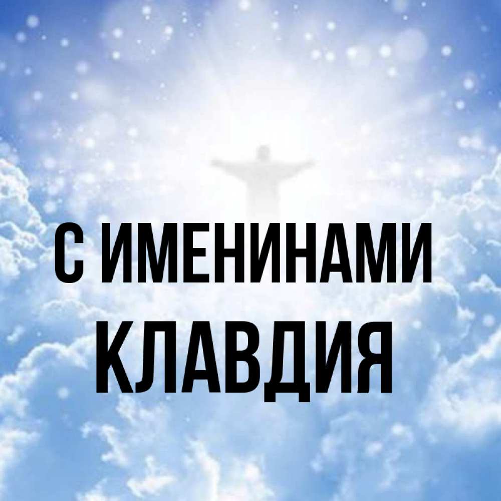 Открытка С именинами Клавдия. ангел на небе. ангел на облаках в свете солнца