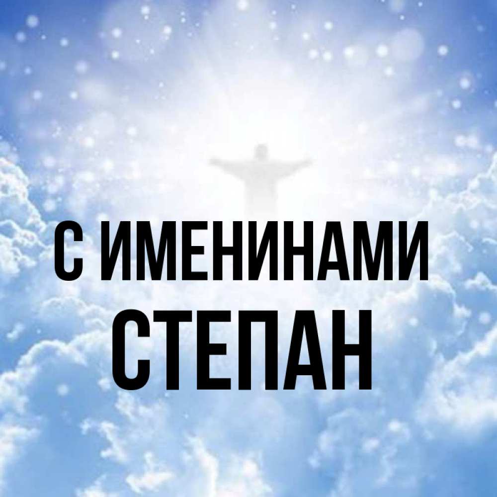 Открытка С именинами Степан. ангел на небе. ангел на облаках в свете солнца