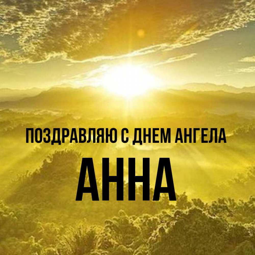 Открытка Поздравляю с днем Ангела Анна. желтый небесный свет. леса и небо в желтом