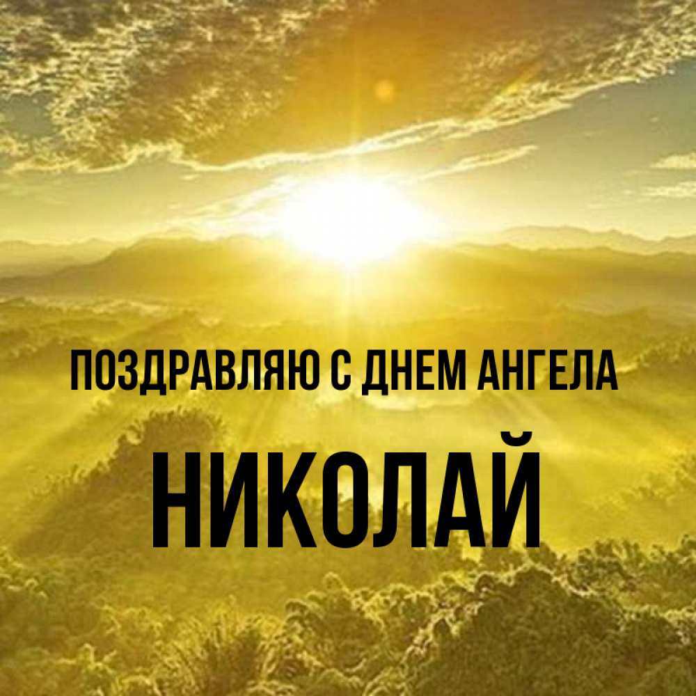 Открытка Поздравляю с днем Ангела Николай. желтый небесный свет. леса и небо в желтом