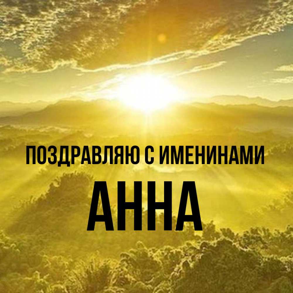 Открытка Поздравляю с именинами Анна. желтый небесный свет. леса и небо в желтом