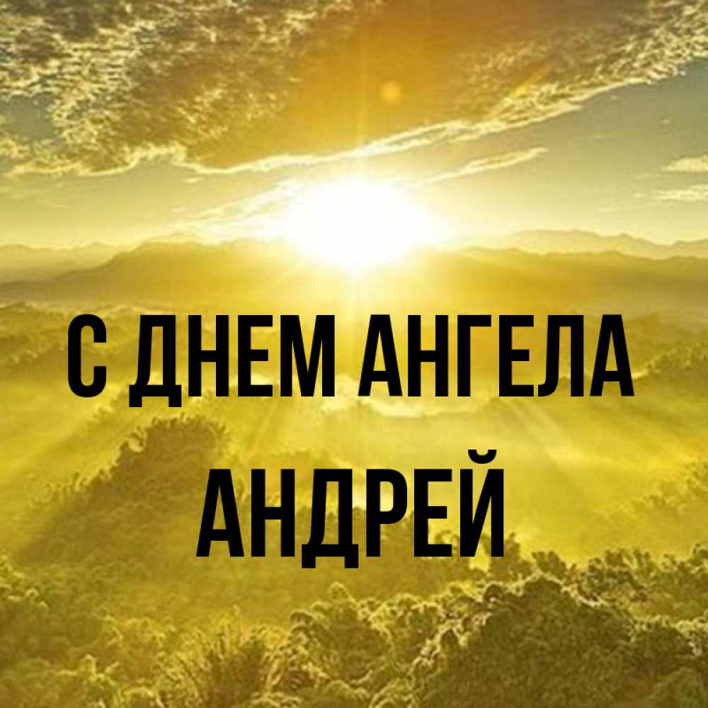 Открытка С днем Ангела Андрей. желтый небесный свет. леса и небо в желтом