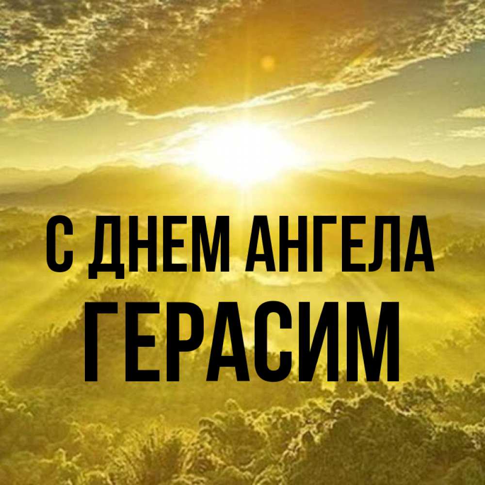 Открытка С днем Ангела Герасим. желтый небесный свет. леса и небо в желтом