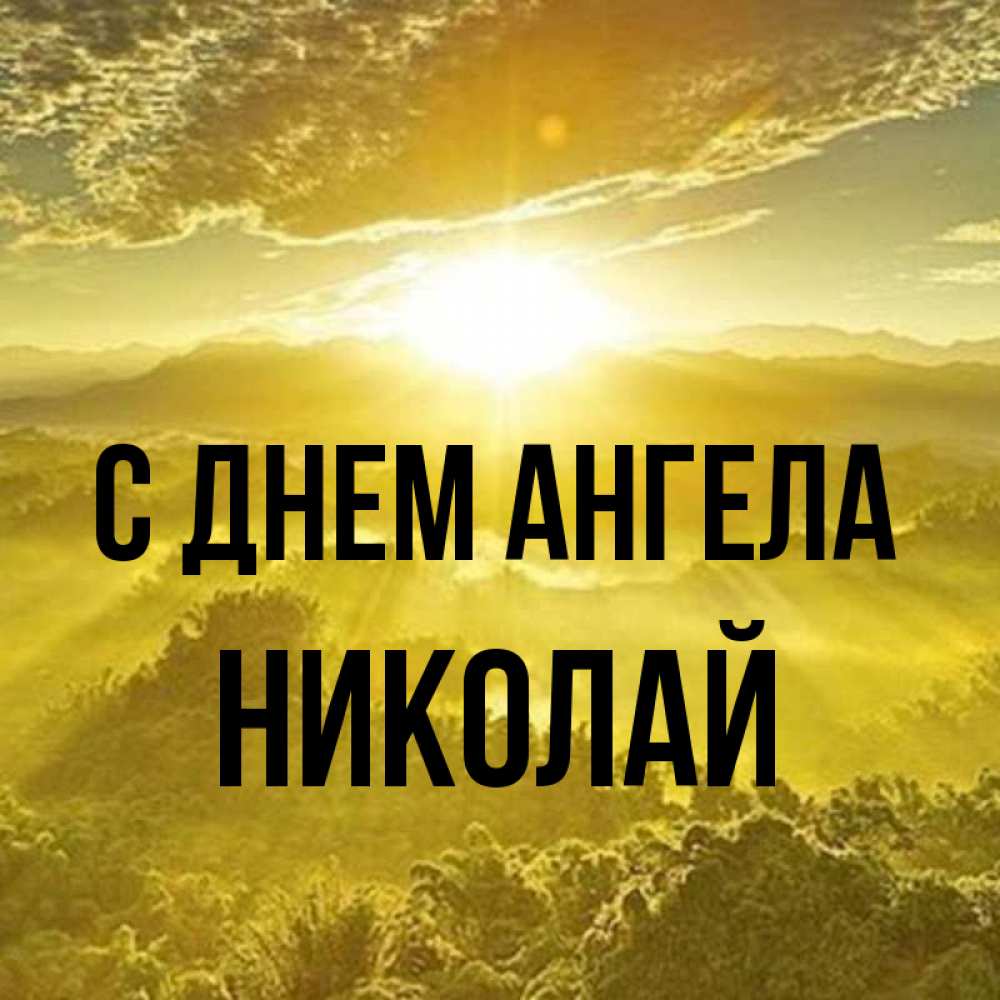Открытка С днем Ангела Николай. желтый небесный свет. леса и небо в желтом