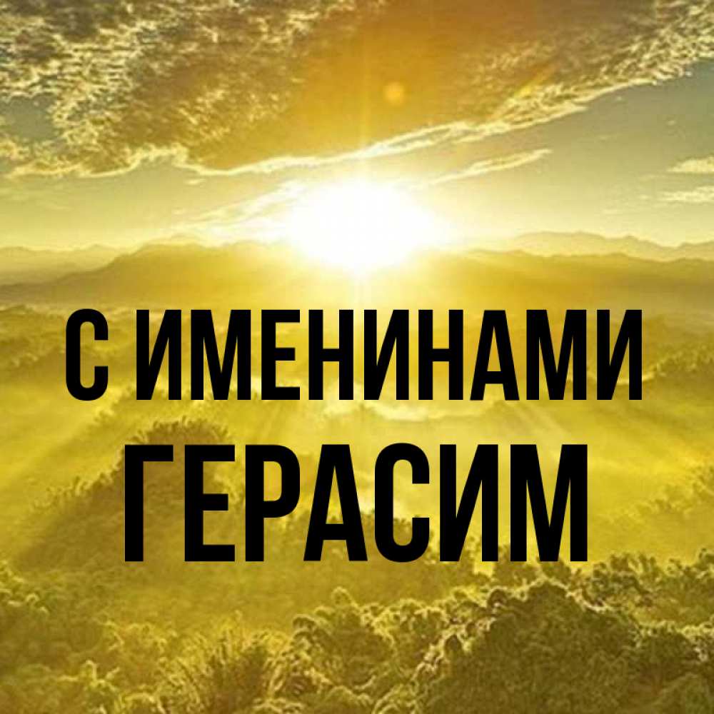 Открытка С именинами Герасим. желтый небесный свет. леса и небо в желтом