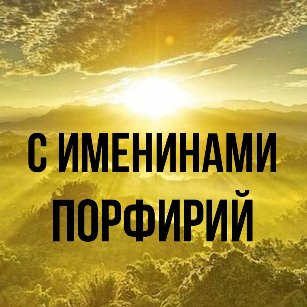 Открытка С именинами Порфирий. желтый небесный свет. леса и небо в желтом