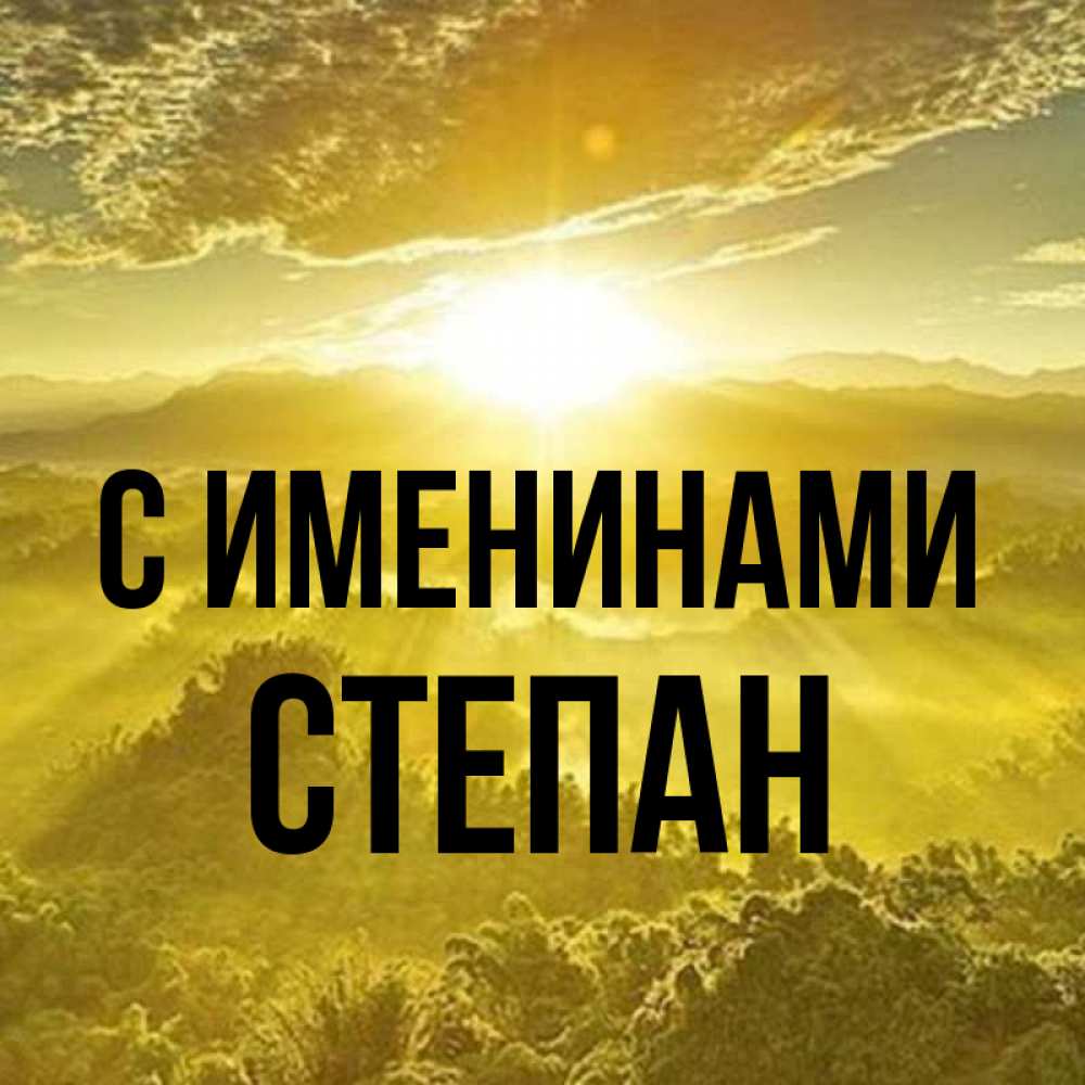 Открытка С именинами Степан. желтый небесный свет. леса и небо в желтом