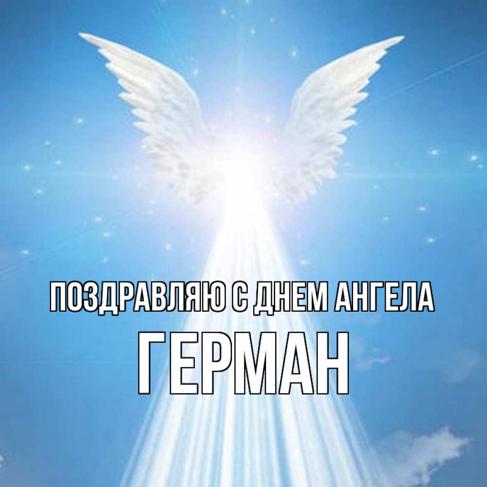 Открытка Поздравляю с днем Ангела Герман. ангел излучает свет. поток света