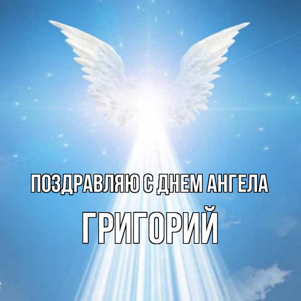 Открытка Поздравляю с днем Ангела Григорий. ангел излучает свет. поток света