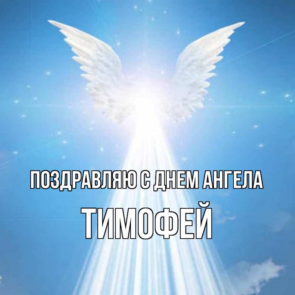Открытка Поздравляю с днем Ангела Тимофей. ангел излучает свет. поток света