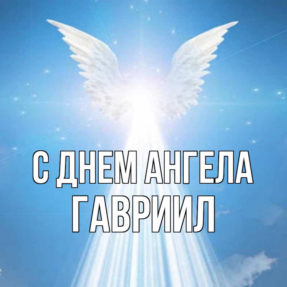 Открытка С днем Ангела Гавриил. ангел излучает свет. поток света