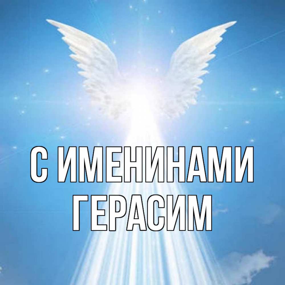 Открытка С именинами Герасим. ангел излучает свет. поток света