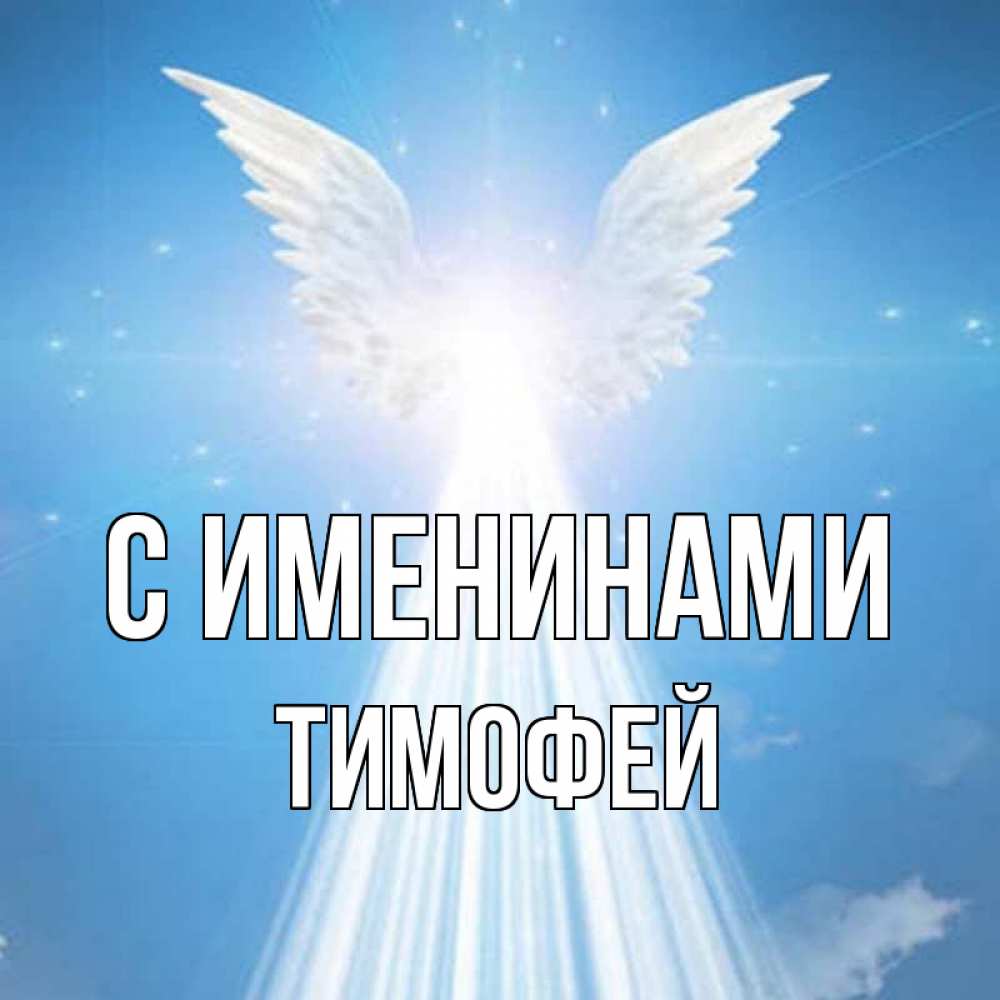 Открытка С именинами Тимофей. ангел излучает свет. поток света