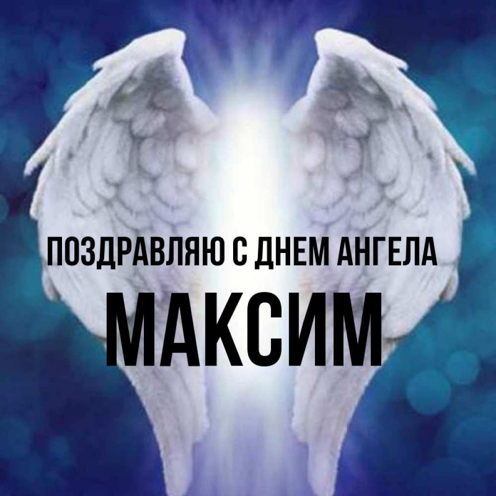 Открытка Поздравляю с днем Ангела Максим. крылья ангела. синий фон и крылышки