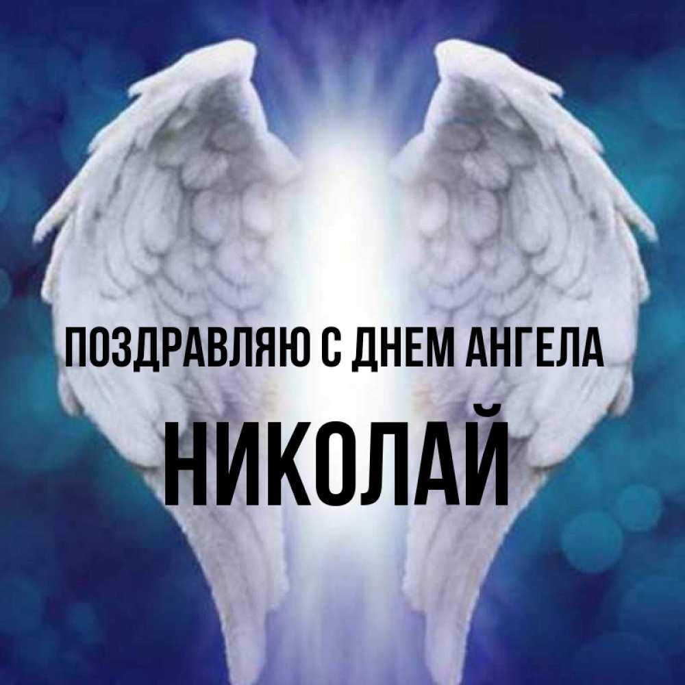 Открытка Поздравляю с днем Ангела Николай. крылья ангела. синий фон и крылышки