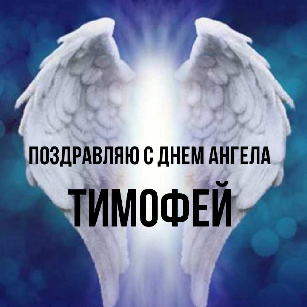 Открытка Поздравляю с днем Ангела Тимофей. крылья ангела. синий фон и крылышки