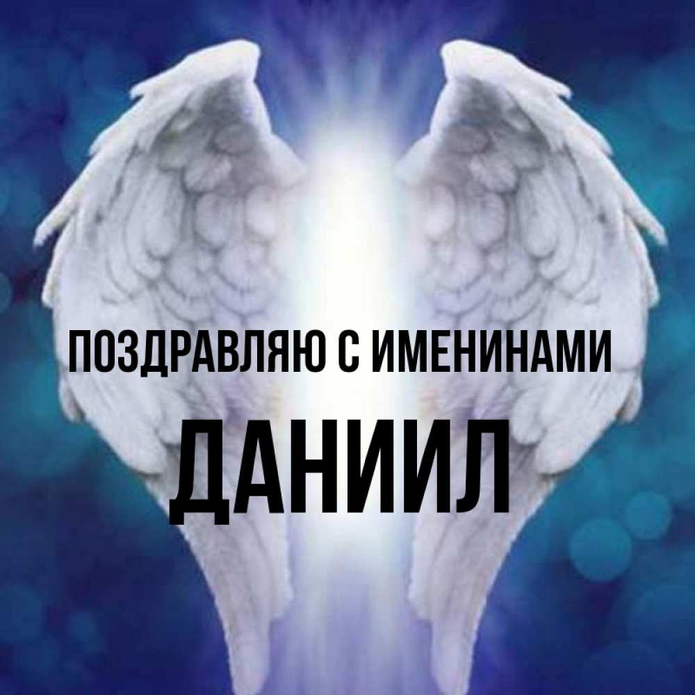 Открытка Поздравляю с именинами Даниил. крылья ангела. синий фон и крылышки