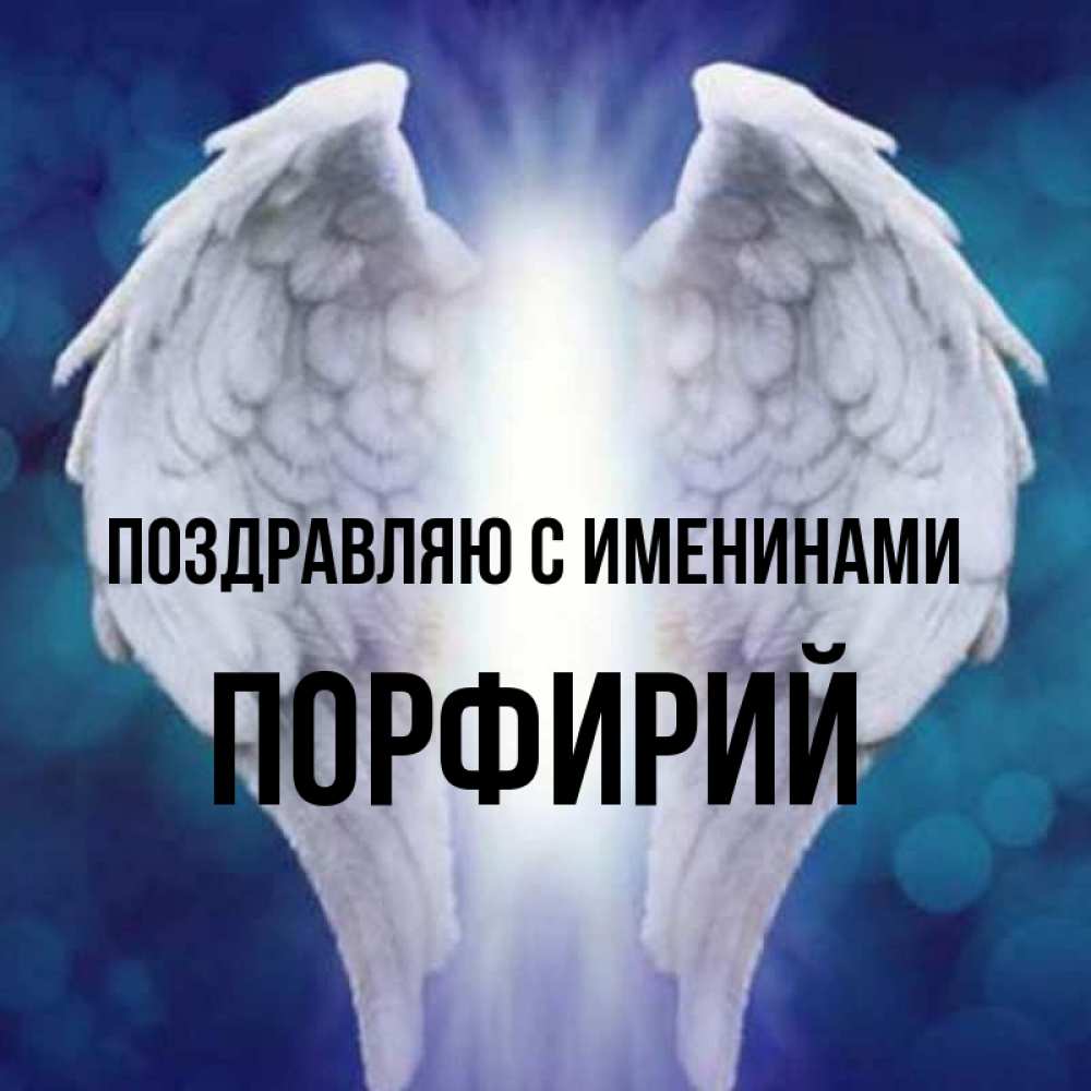 Открытка Поздравляю с именинами Порфирий. крылья ангела. синий фон и крылышки