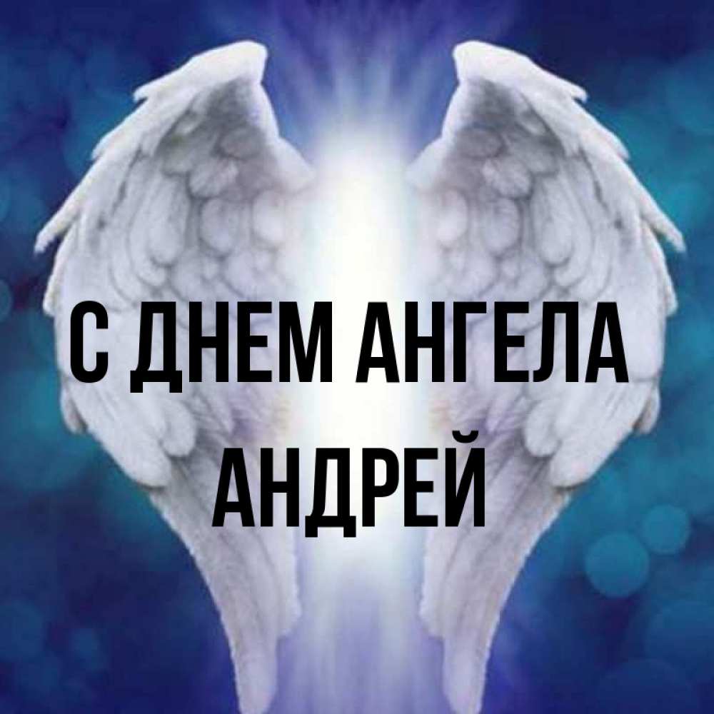 Открытка С днем Ангела Андрей. крылья ангела. синий фон и крылышки
