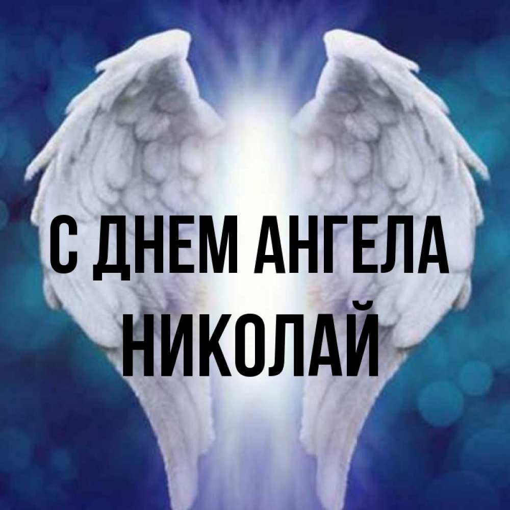 Открытка С днем Ангела Николай. крылья ангела. синий фон и крылышки