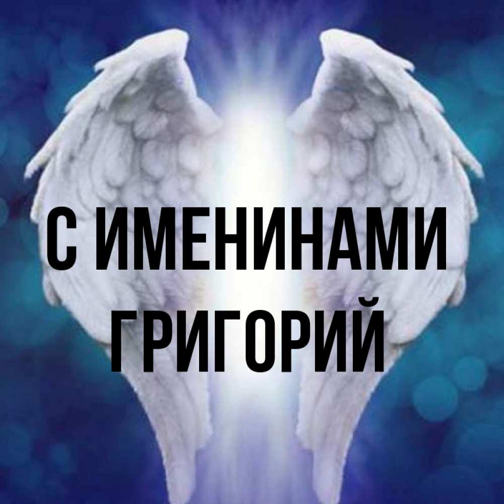 Открытка С именинами Григорий. крылья ангела. синий фон и крылышки