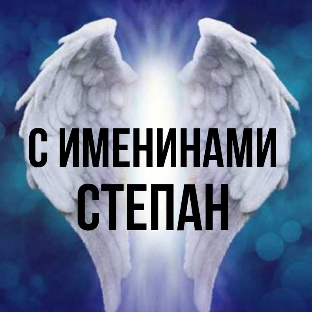 Открытка С именинами Степан. крылья ангела. синий фон и крылышки