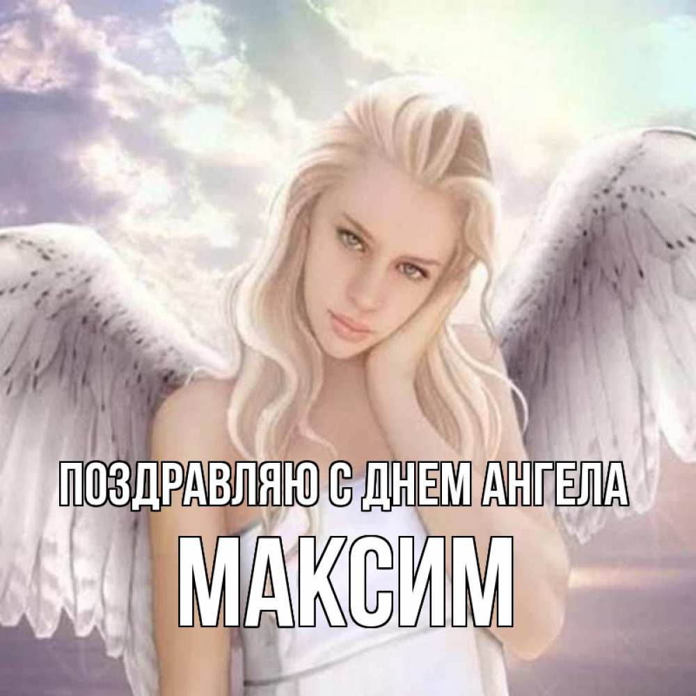 Открытка Поздравляю с днем Ангела Максим. красивая девушка ангел. блондинка