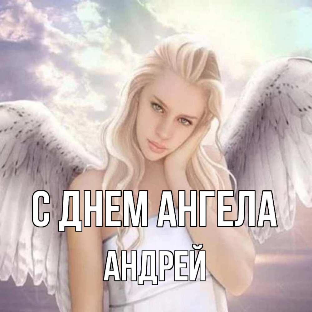 Открытка С днем Ангела Андрей. красивая девушка ангел. блондинка