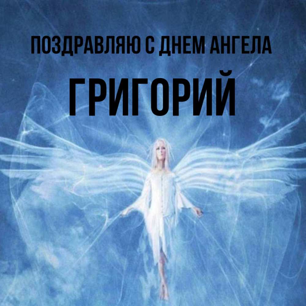 Открытка Поздравляю с днем Ангела Григорий. ангел с длинными крыльями. голубой фон и крылья как у стрекозы