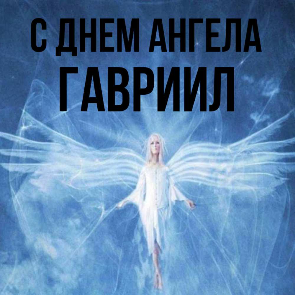 Открытка С днем Ангела Гавриил. ангел с длинными крыльями. голубой фон и крылья как у стрекозы