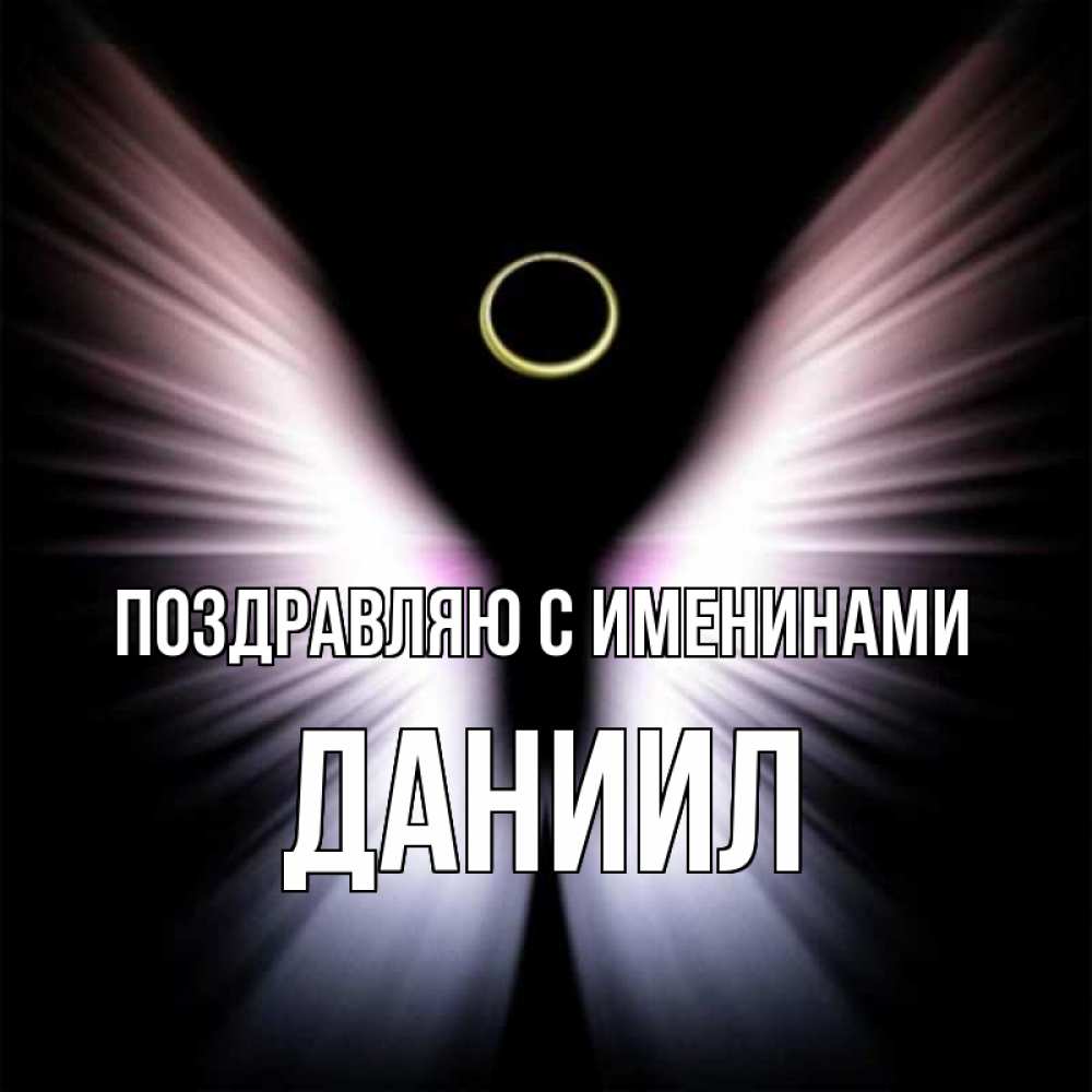 Открытка Поздравляю с именинами Даниил. нимб и крылья. ангел из света