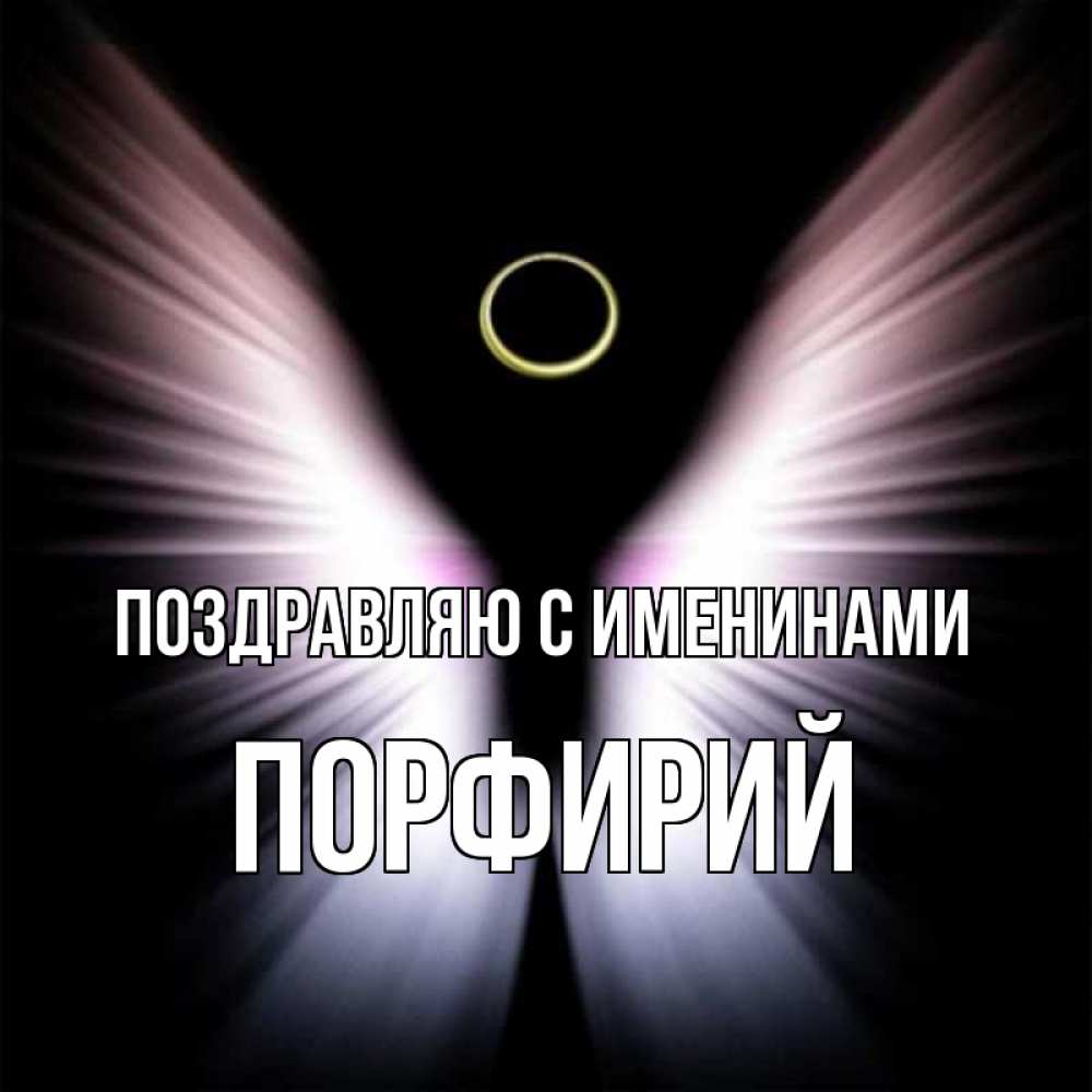 Открытка Поздравляю с именинами Порфирий. нимб и крылья. ангел из света