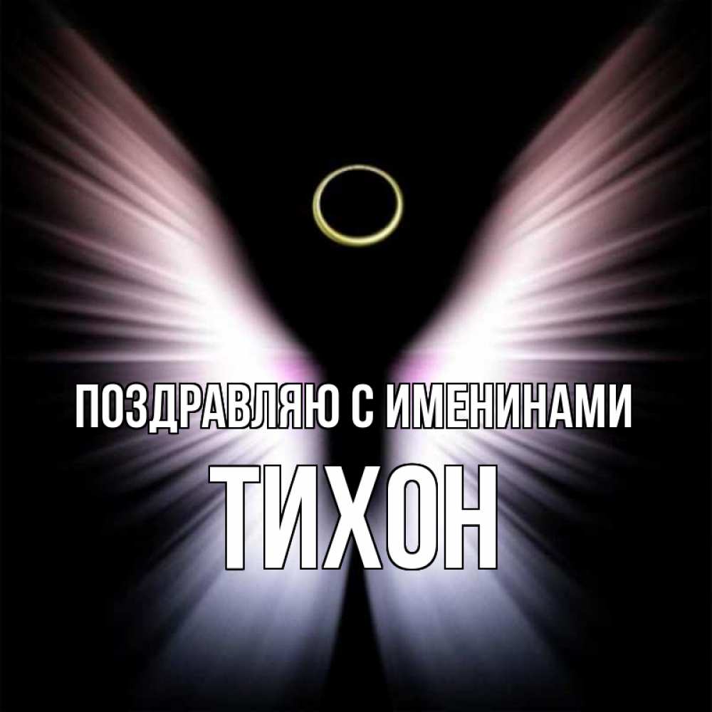 Открытка Поздравляю с именинами Тихон. нимб и крылья. ангел из света