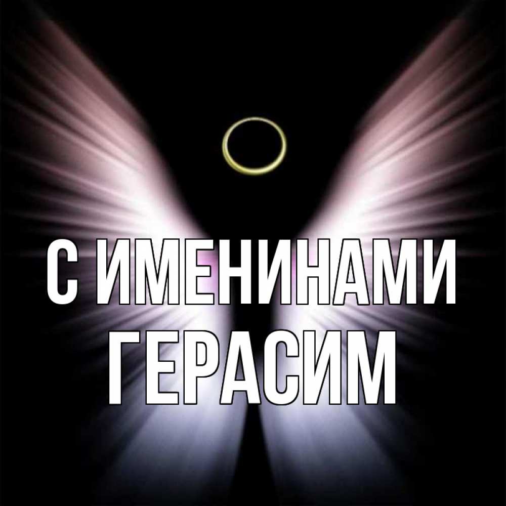 Открытка С именинами Герасим. нимб и крылья. ангел из света