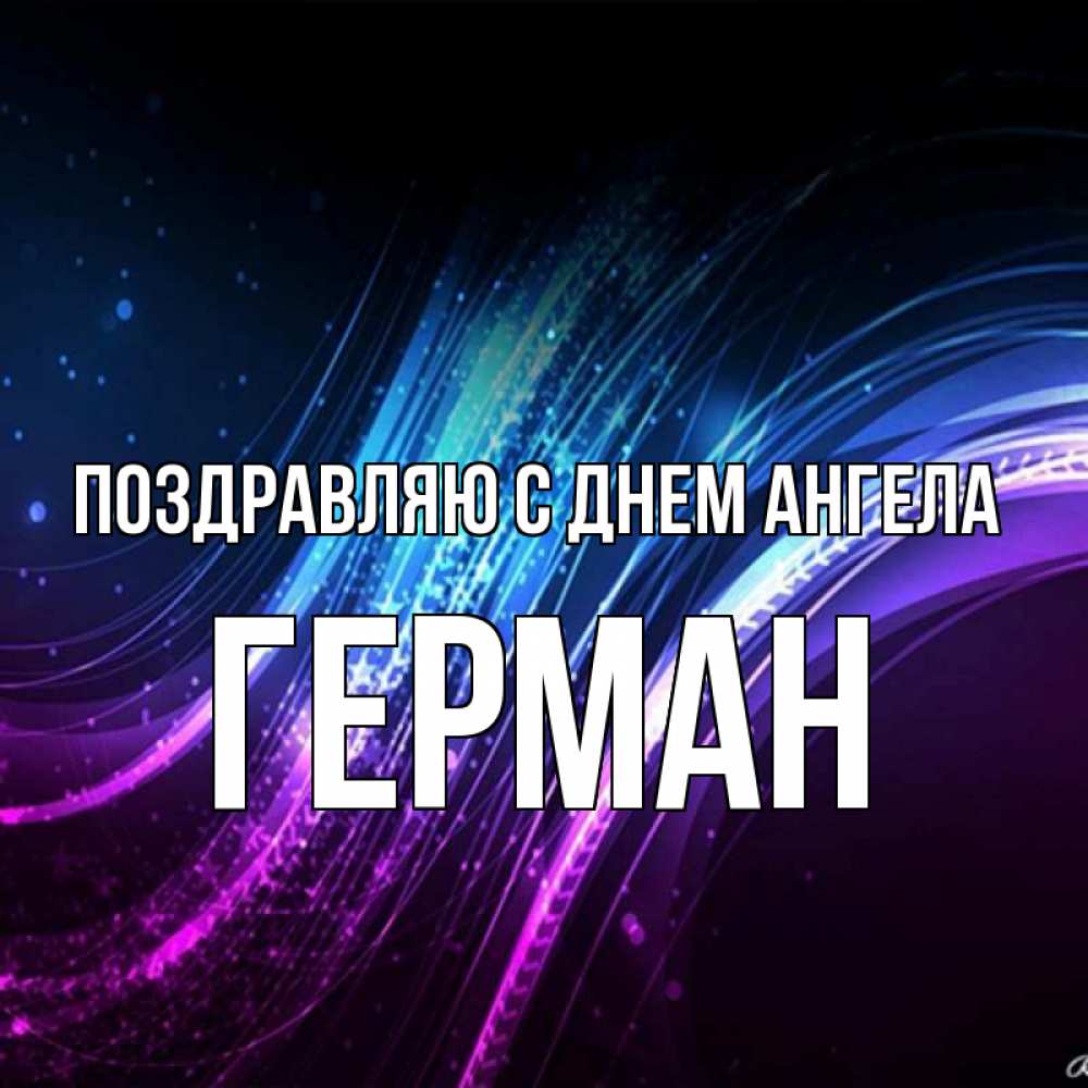 Открытка Поздравляю с днем Ангела Герман. Абстрактный рисунок. фиолетовый фон
