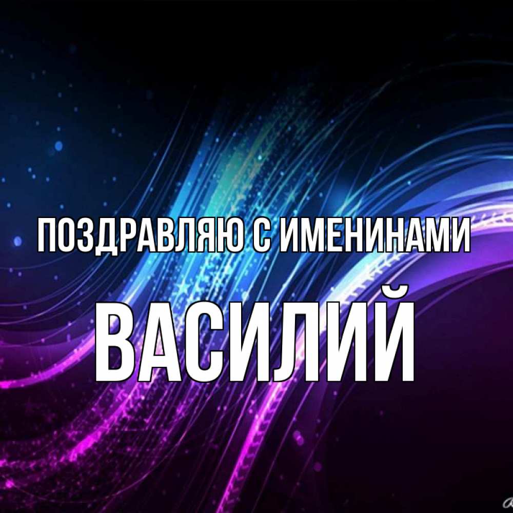 Открытка Поздравляю с именинами Василий. Абстрактный рисунок. фиолетовый фон