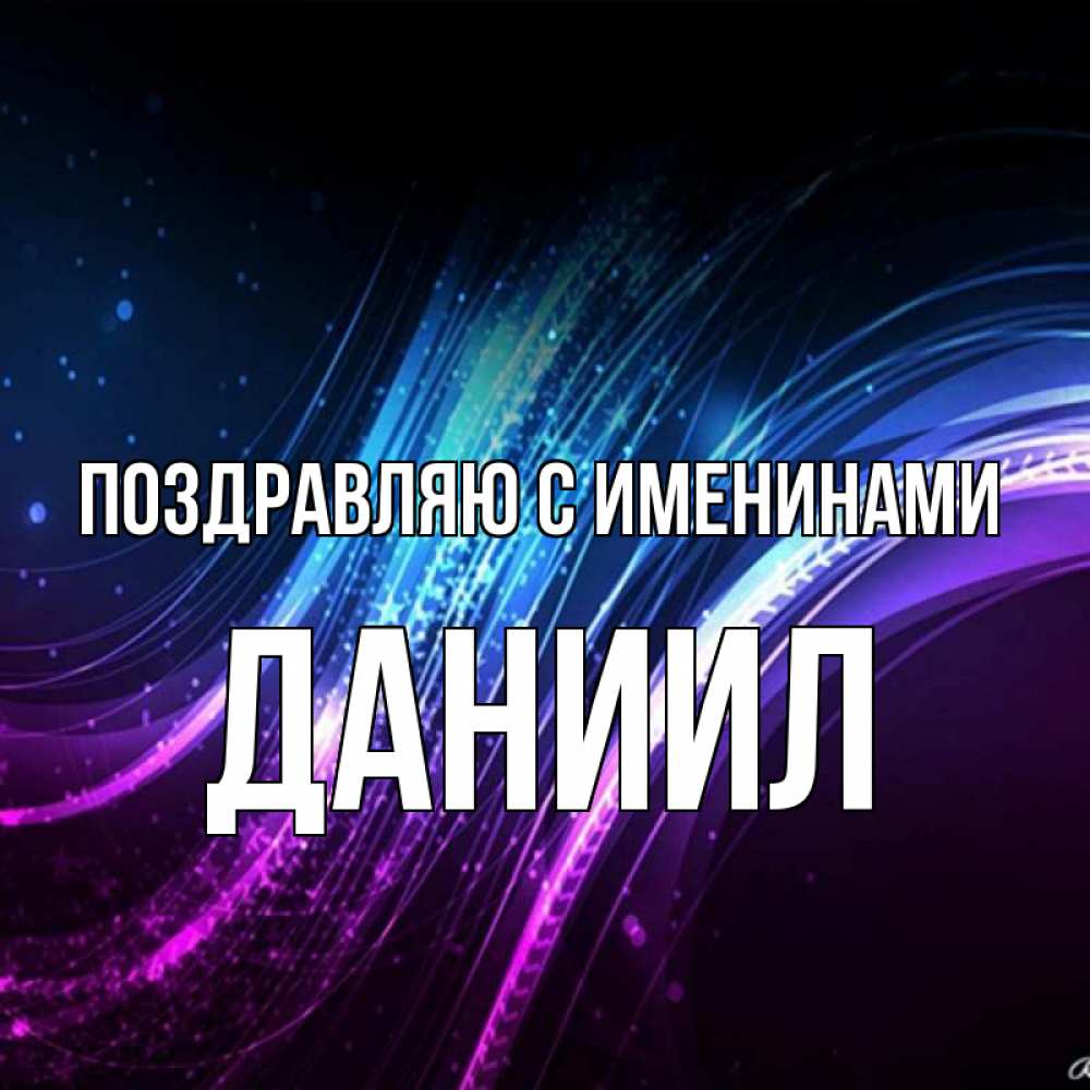 Открытка Поздравляю с именинами Даниил. Абстрактный рисунок. фиолетовый фон