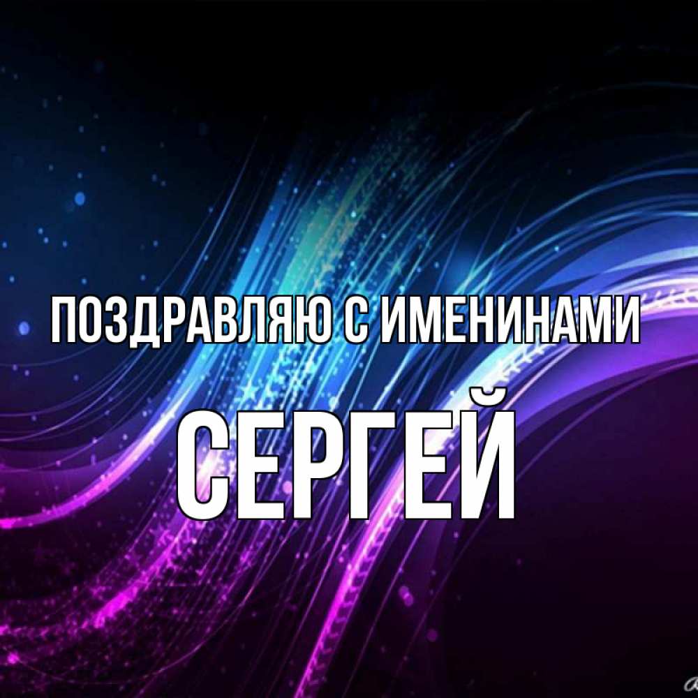 Открытка Поздравляю с именинами Сергей. Абстрактный рисунок. фиолетовый фон