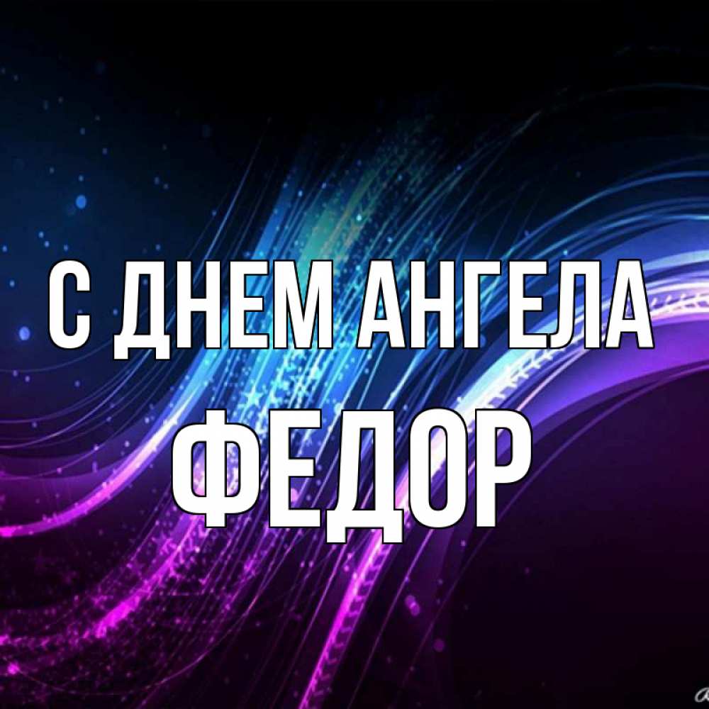 Открытка С днем Ангела Федор. Абстрактный рисунок. фиолетовый фон