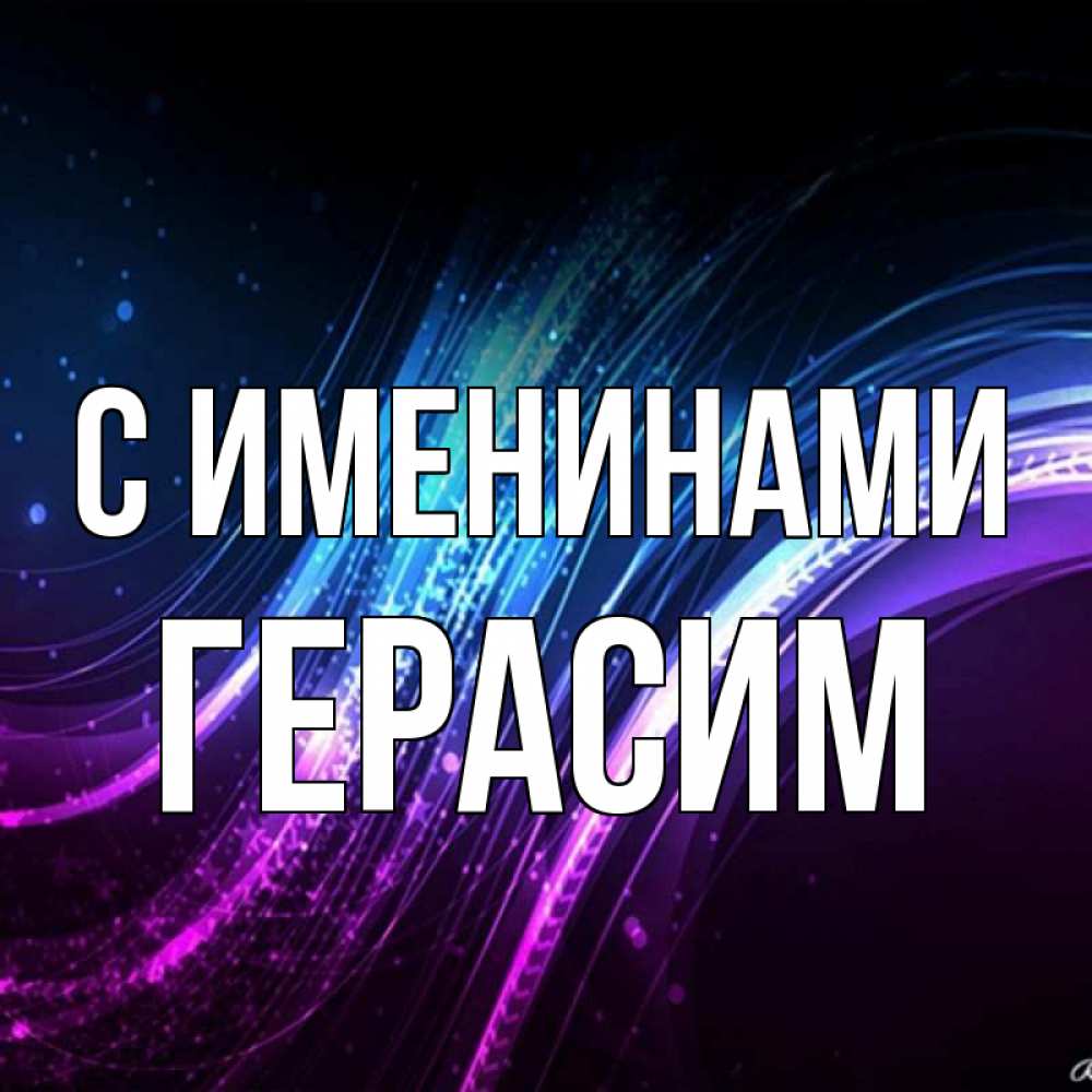 Открытка С именинами Герасим. Абстрактный рисунок. фиолетовый фон
